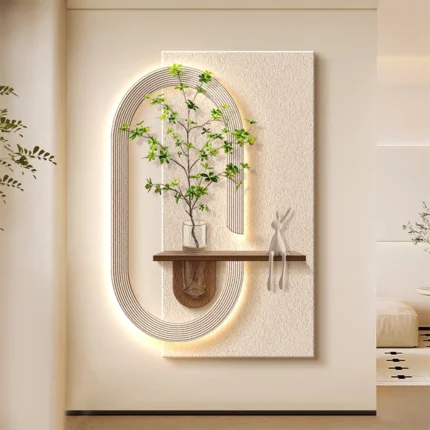 Crafted from high-quality materials, this wall décor piece enhances living rooms, hallways, and entryways with its minimalist contemporary look and subtle lighting effect.