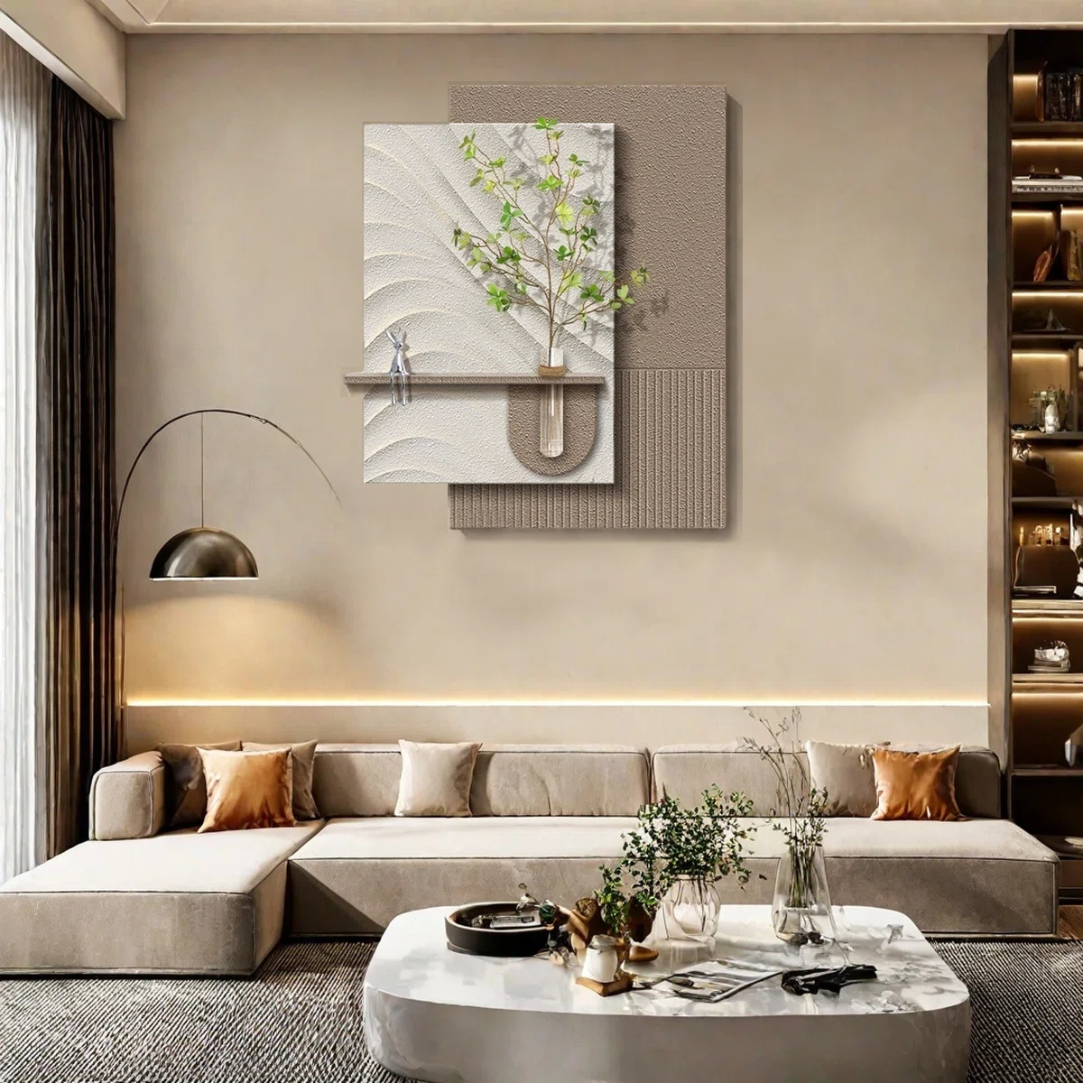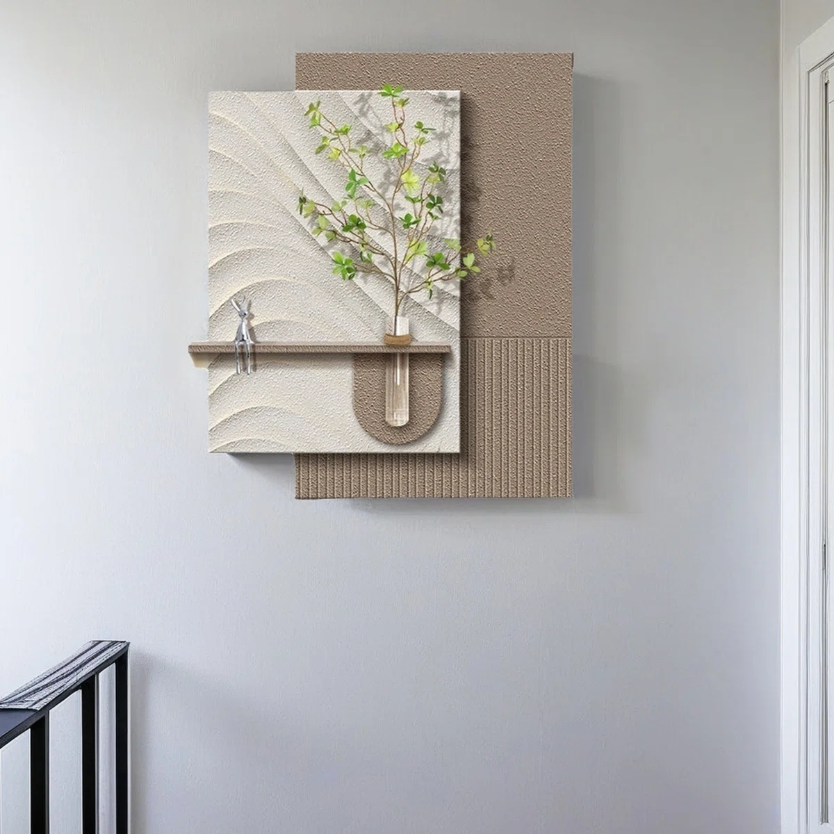 The built-in decorative shelf and glass vase make it a perfect blend of art and functionality — ideal for displaying fresh greenery or elegant faux plants.