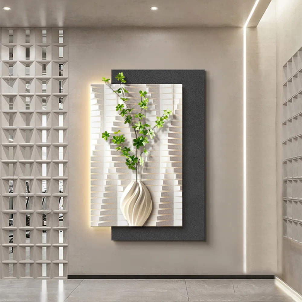 Crafted from high-quality materials, this wall décor piece enhances living rooms, hallways, and entryways with its minimalist contemporary look and subtle lighting effect.