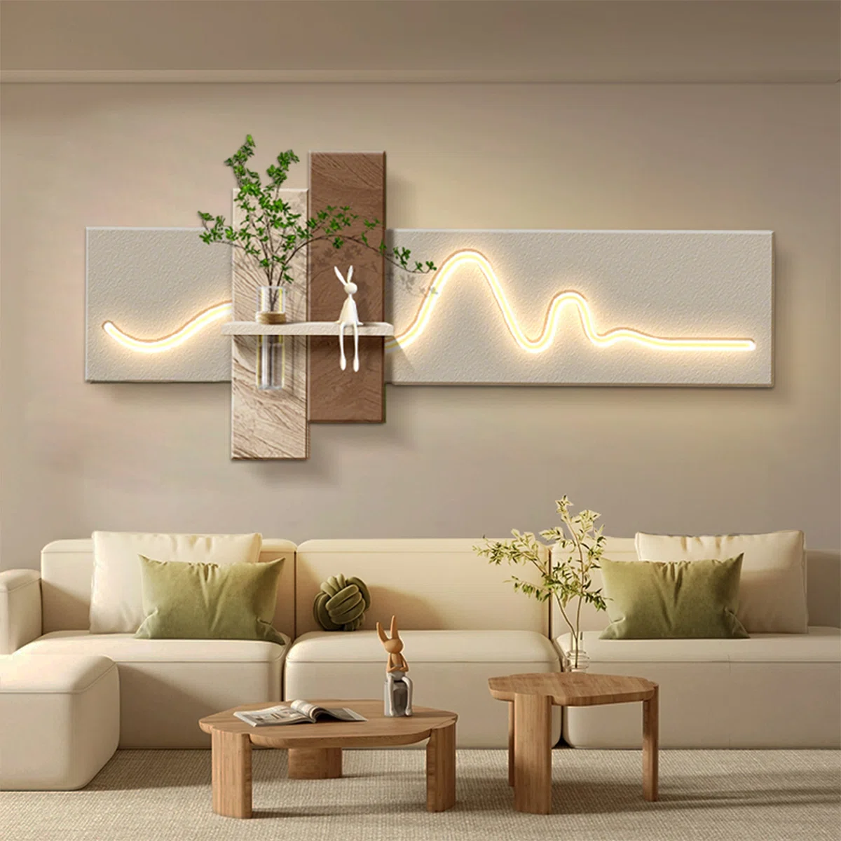 Crafted from high-quality materials, this wall décor piece enhances living rooms, hallways, and entryways with its minimalist contemporary look and subtle lighting effect.